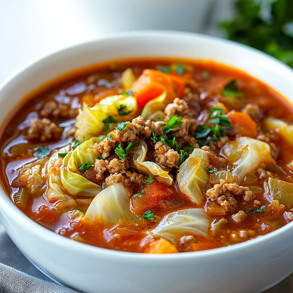 Cabbage soup with ground beef is the ultimate comfort food, combining tender cabbage, savory ground beef, and a blend of aromatic spices for a satisfying meal. Perfect for chilly evenings or busy weeknights, this hearty dish is packed with flavor and nutrients. With its beautiful colors and rich taste, it’s sure to become a family favorite. Pair it with crusty bread for an extra touch of warmth and enjoyment.