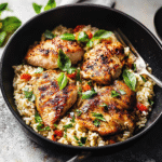 Experience the ultimate comfort food with this one pan chicken and rice recipe! Juicy, tender chicken thighs are combined with fluffy long-grain rice and vibrant bell peppers for a colorful, flavorful meal that comes together effortlessly. Perfect for busy weeknights, this dish requires minimal cleanup while delivering maximum taste. Gather your loved ones around the table and enjoy this deliciously satisfying creation!
