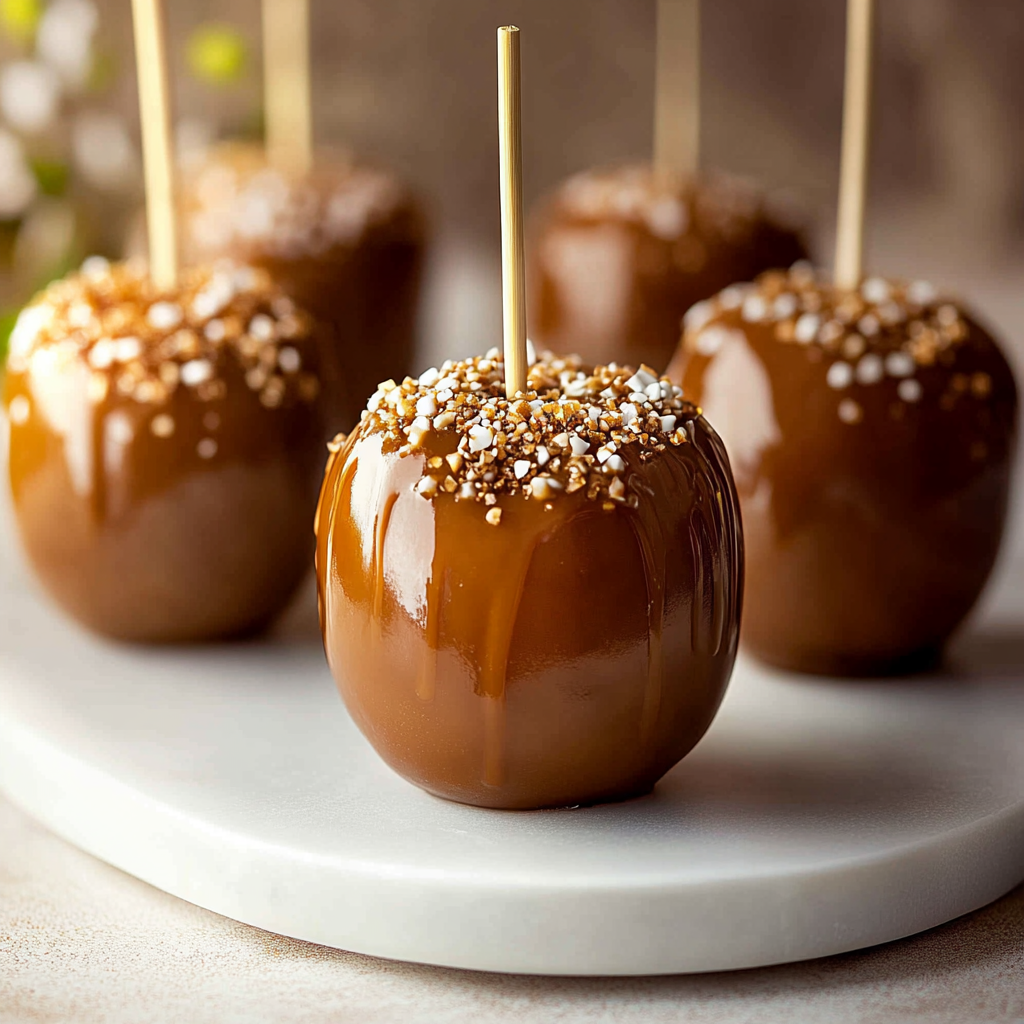 **Customize as Desired**: While the caramel is still slightly warm, roll your apples in toppings like crushed nuts or colorful sprinkles for added flair!