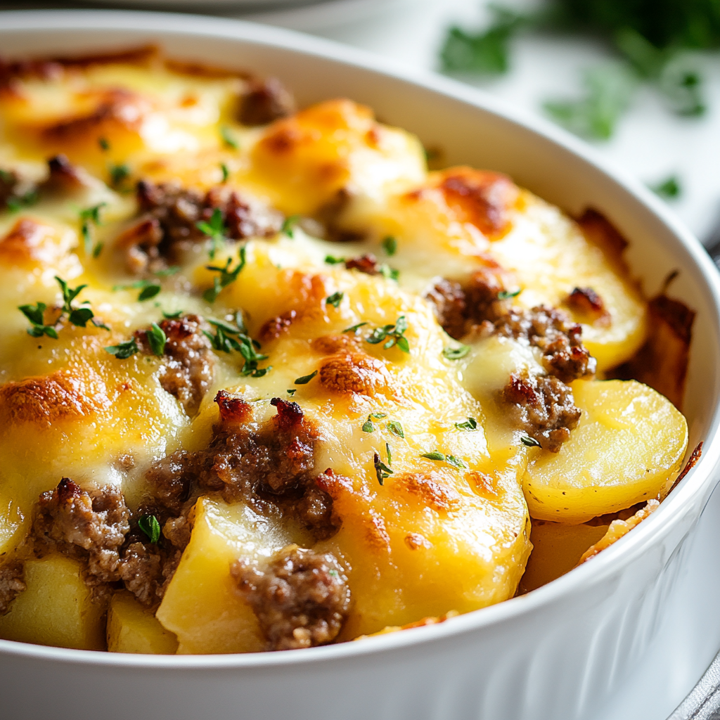 Enjoy every cheesy bite of this hamburger potato casserole!