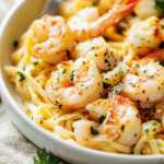 - Combine cooked pasta with the creamy shrimp mixture in the baking dish. Top with extra cheese if desired.