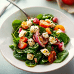 Indulge in a vibrant Spinach Salad that promises not just nutrition but a delightful flavor experience. This colorful dish combines fresh greens, juicy cherry tomatoes, crunchy cucumbers, zesty red onions, creamy feta, and toasted walnuts, all drizzled with a perfectly balanced dressing. Ideal for busy weeknights or festive gatherings, this salad is both easy to prepare and visually stunning, making it the perfect centerpiece for any table.