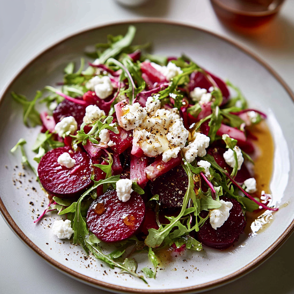 - This vibrant beet salad with goat cheese combines earthy flavors and creamy textures, making it a perfect appetizer or side dish